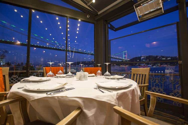 Besides the distinguished tastes and service, the restaurant has a mythological atmosphere with Renaissance pictures on the walls. Located by the sea in Bebek, one of the fanciest towns by the Bosphorus, the restaurant is a great example of an excellent fish restaurant. This elite restaurant has hosted both local and international celebrities such as Oliver Stone, German Foreign Affairs Minister Fischer, Al Gore, Jan Claude Van Dame, Catharine Deneuve, Gerard Depardieu and the King of Bahrain.